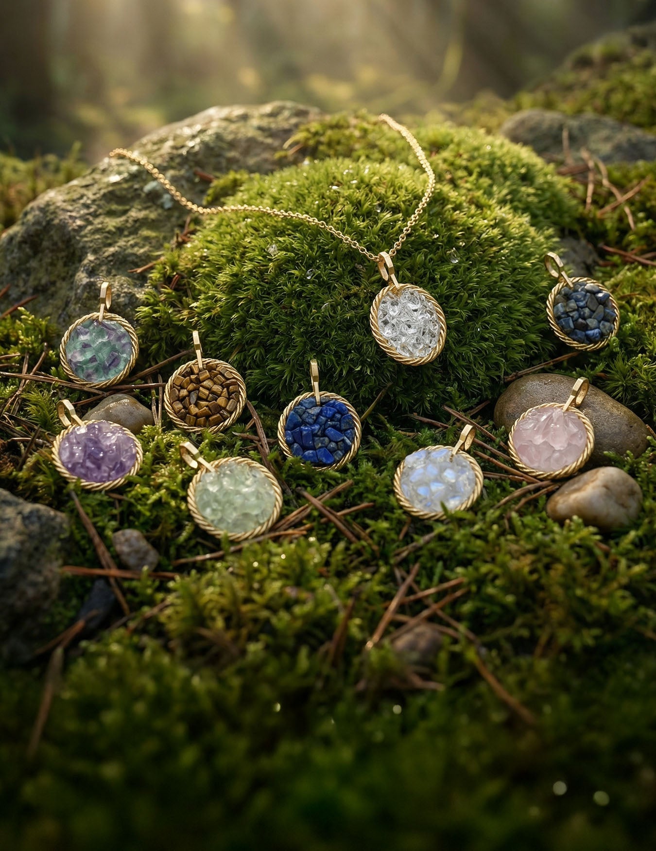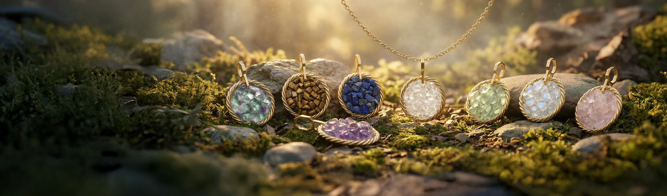 Amulet tensorowy z Kryształem Górskim – Mosiądz pozłacany