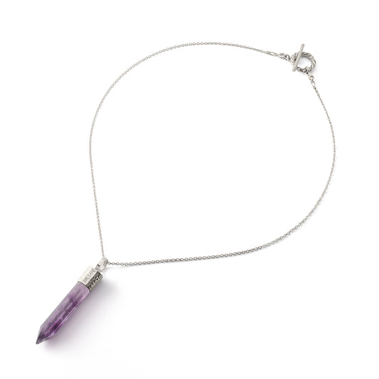 Naszyjnik 44 cm z Ametystem – Srebro 925 pokryte platyną